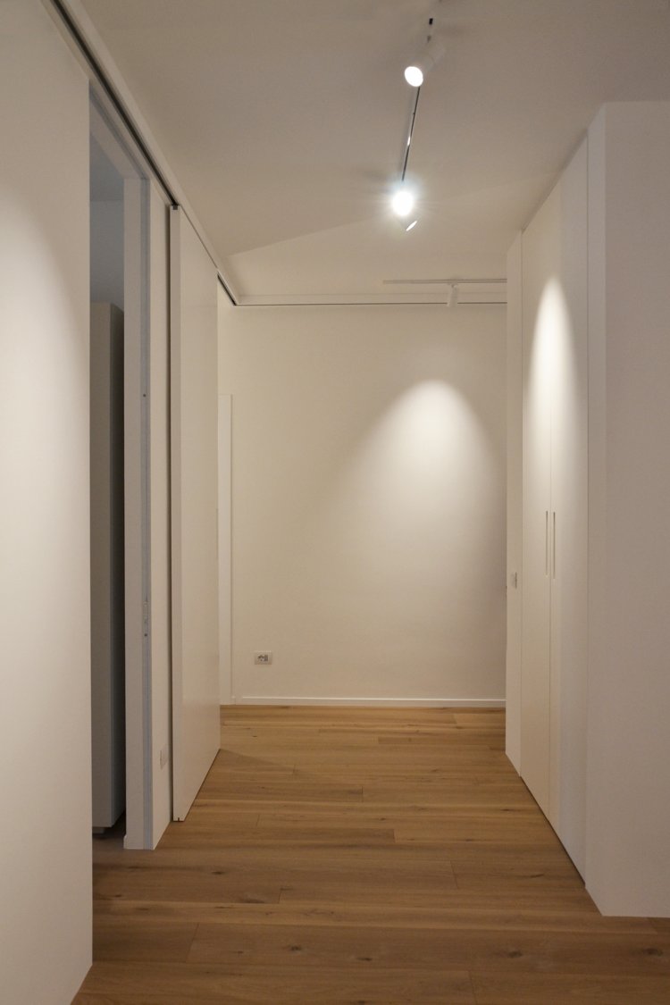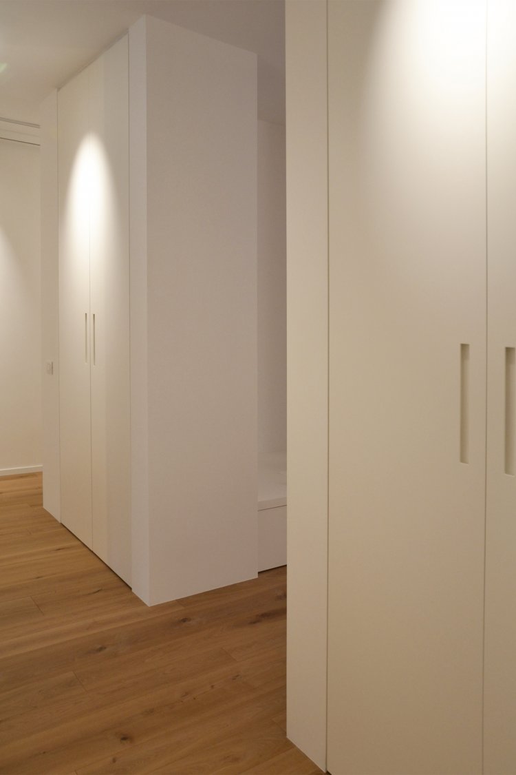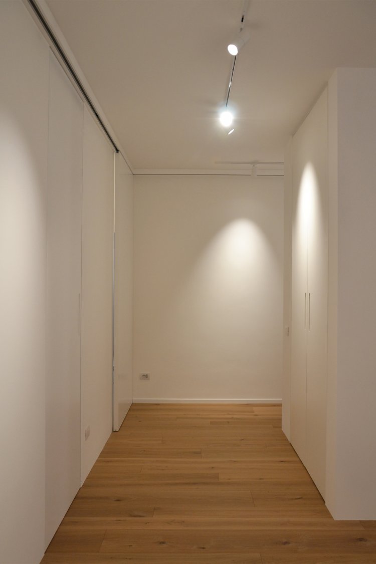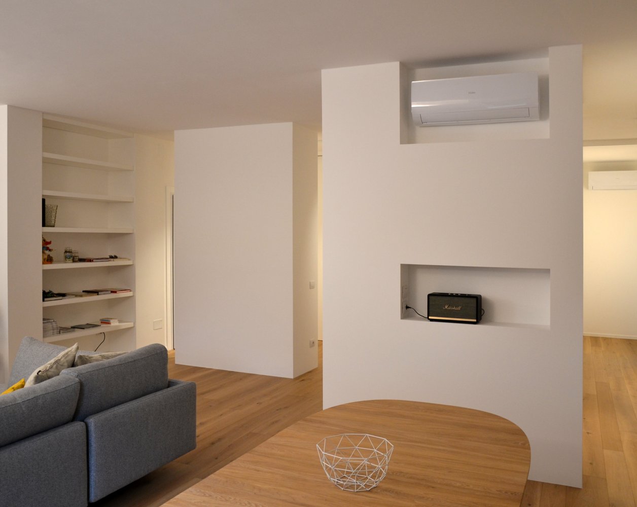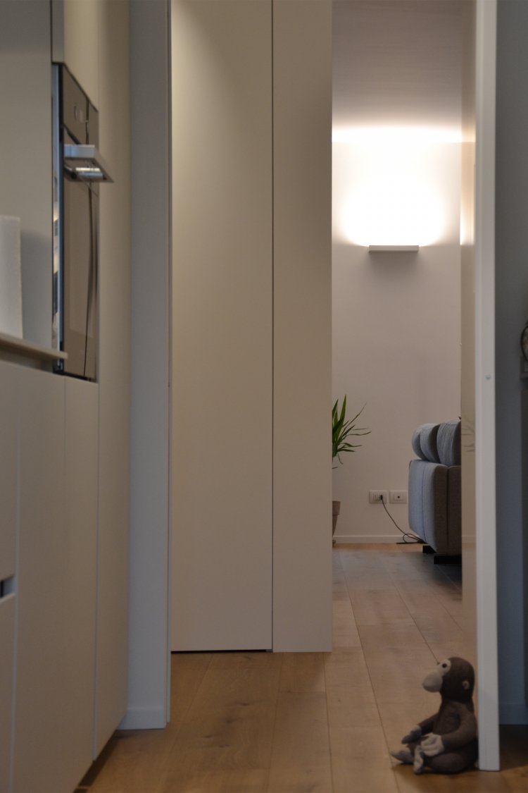 A large flat organized on a very classical circulation model that limited a functional use of spaces, is totally reshaped replacing most of existing walls with containing volumes that articulate indoor spaces according to an innovative and flexible approach. These volumes act as buffer elements while expanding the storage capacity and introducing new spaces for reading or relaxing. Sliding walls are instead adopted to separate the private spaces from the public ones.
