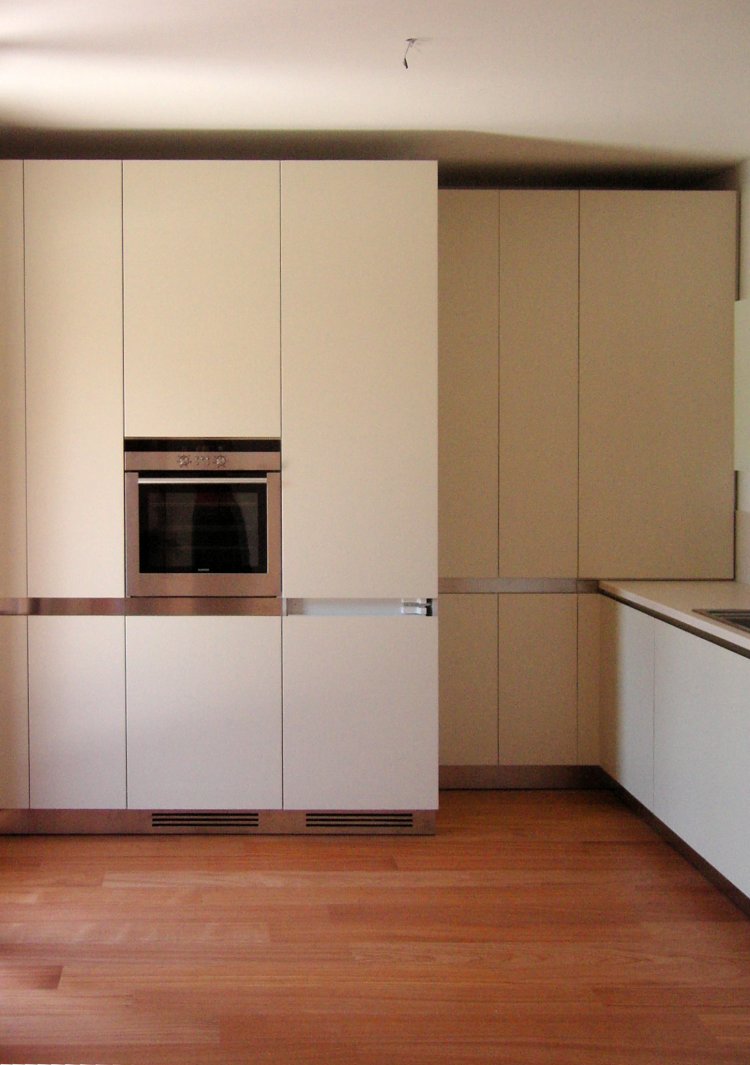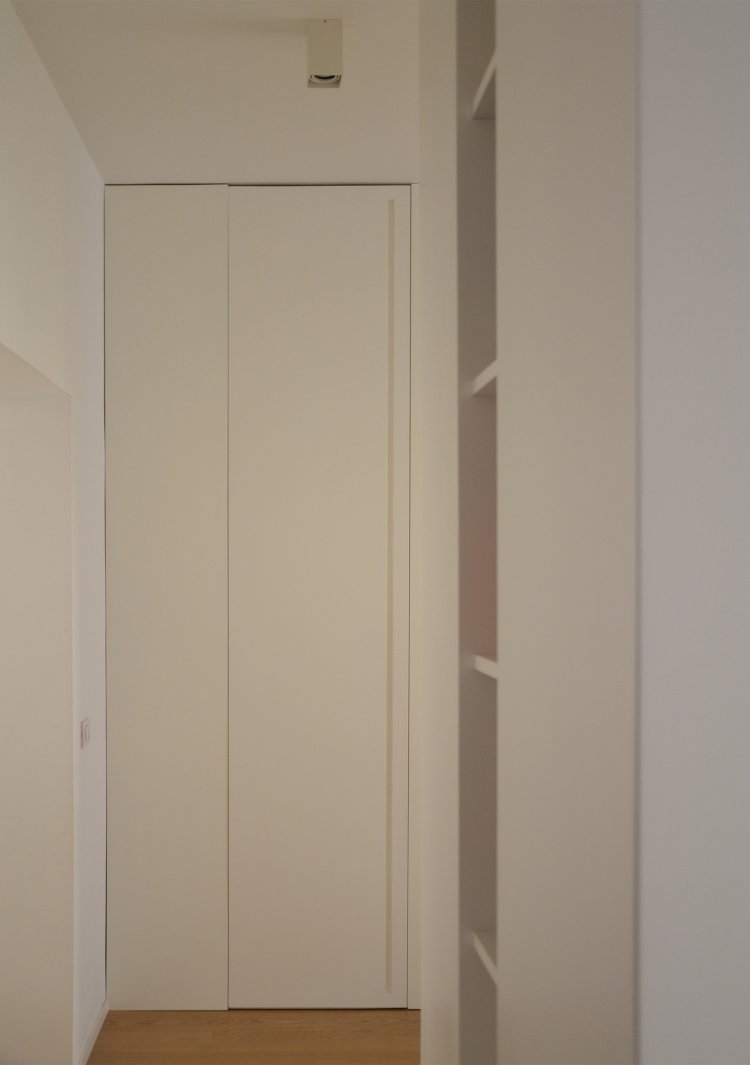La necessità di definire una chiara gerarchia tra gli spazi di questa abitazione per una famiglia di cinque persone ha portato il progetto ad indagare il rapporto tra spazi serventi e spazi serviti. Elementi funzionali, impianti e servizi sono integrati in nuovi volumi caratterizzati dalla matericità delle superfici.