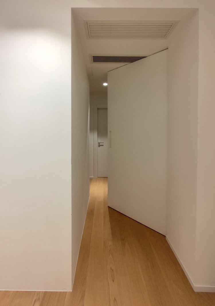 La ristrutturazione di un ampio appartamento risalente agli anni '70 ha ridisegnato completamente gli spazi, ridimensionando gli ambienti per ampliare al massimo la zona giorno. Nuovi volumi funzionali ed elementi mobili riorganizzano la distribuzione e modellano lo spazio in modo flessibile adottando partizioni scorrevoli e rotanti che consentono di comprimere ed espandere la percezione dello spazio a seconda delle necessità. Anche il progetto illuminotecnico contribuisce a sottolineare la sequenza spaziale che separa nettamente gli spazi privati da quelli di relazione.