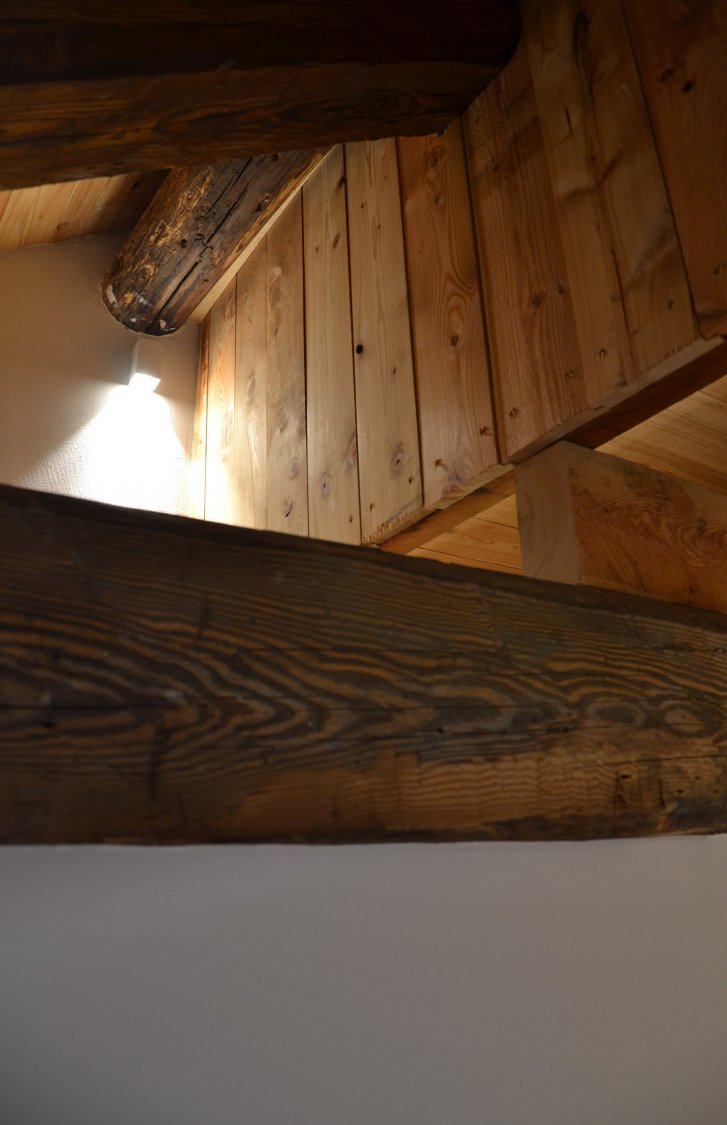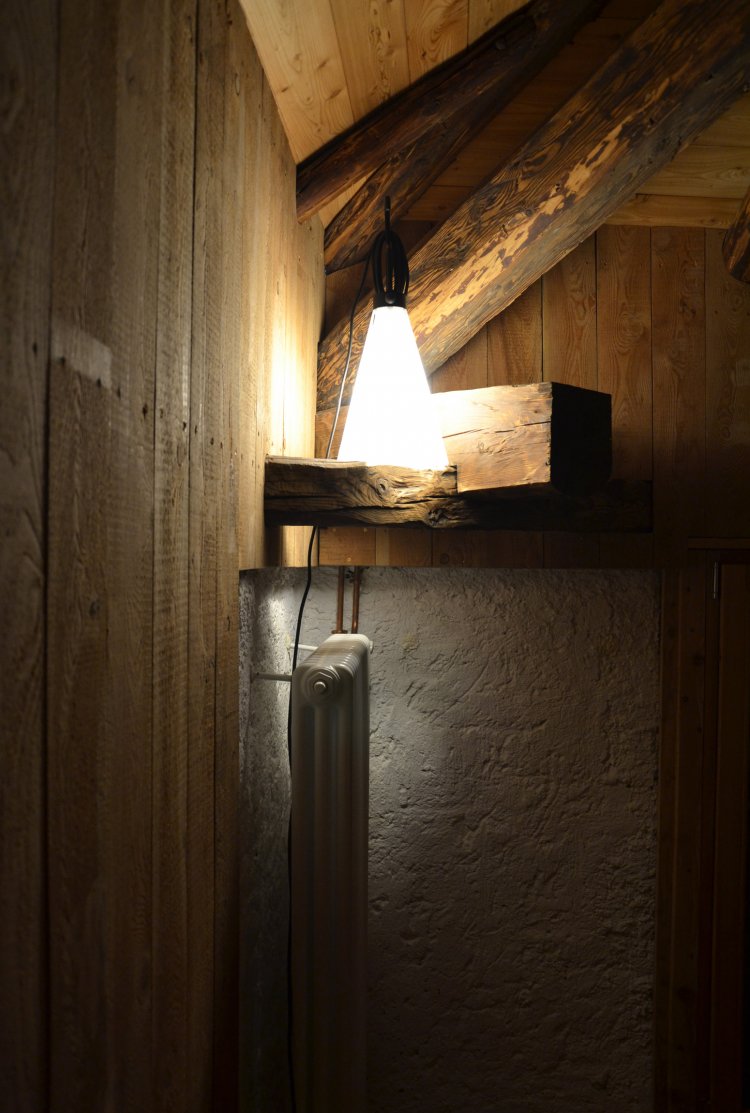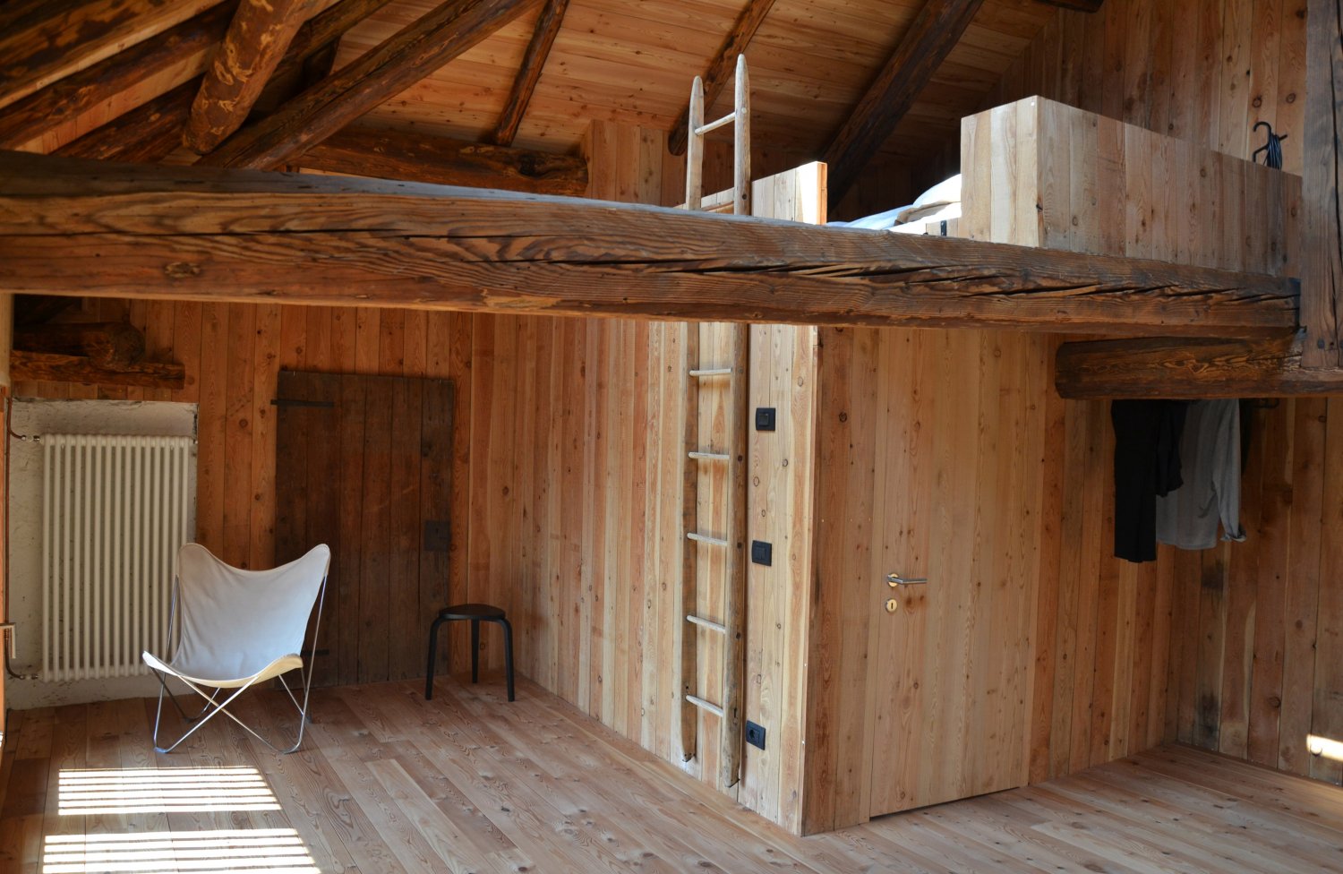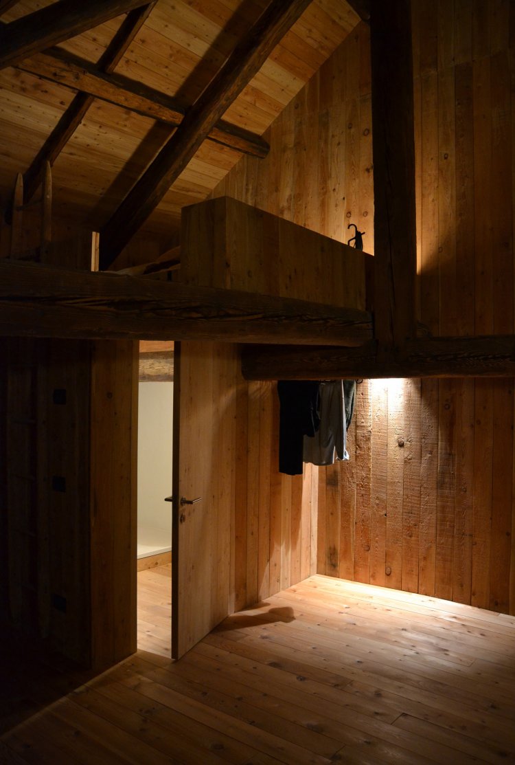 Il grande sottotetto di un edificio tradizionale in un piccolo borgo montano è stato trasformato in un loft dal design minimale che mette in risalto la configurazione della struttura originale del tetto in legno e la qualità dei materiali tradizionali adottati nel processo di ristrutturazione. In continuità con la copertura inclinata, un rivestimento in larice completa le pareti a secco opportunamente isolate, creando un ambiente suggestivo dove un piccolo box ospita tutte le funzioni di servizio.