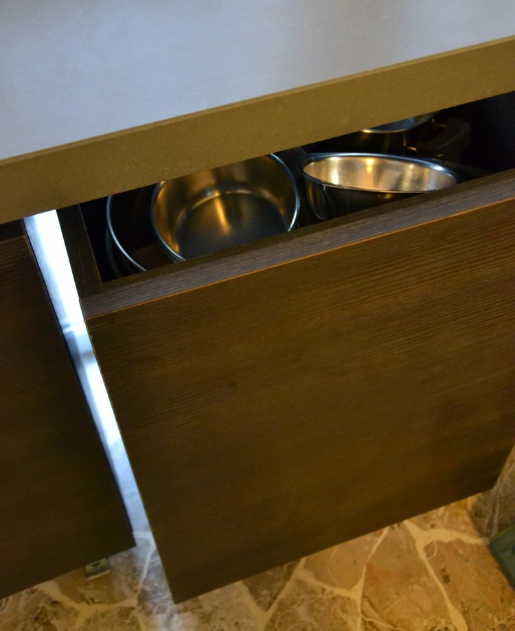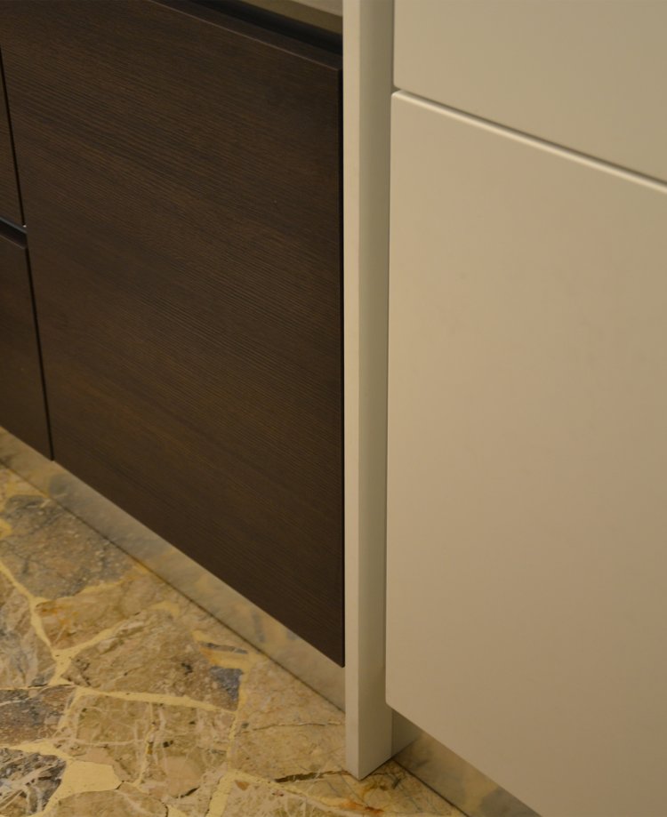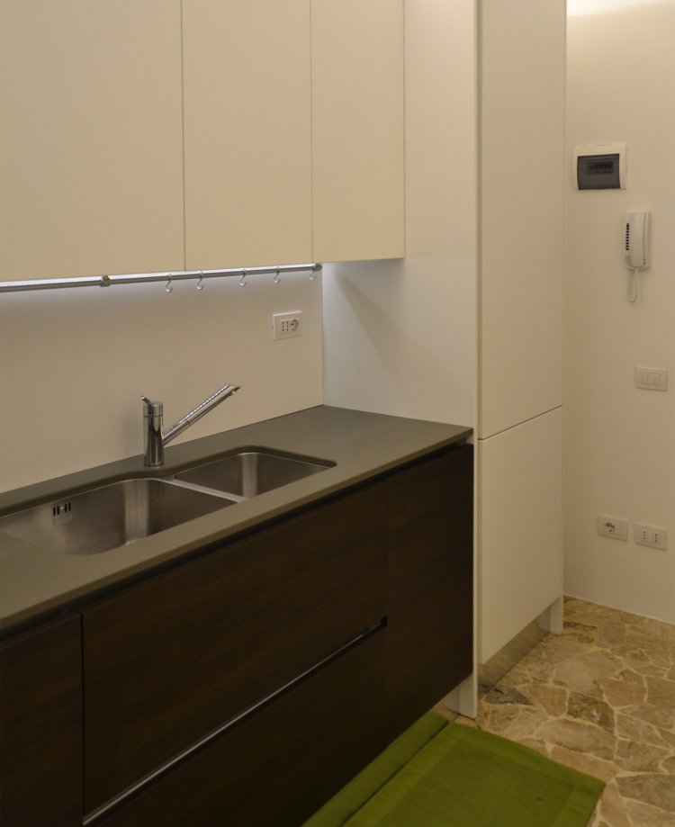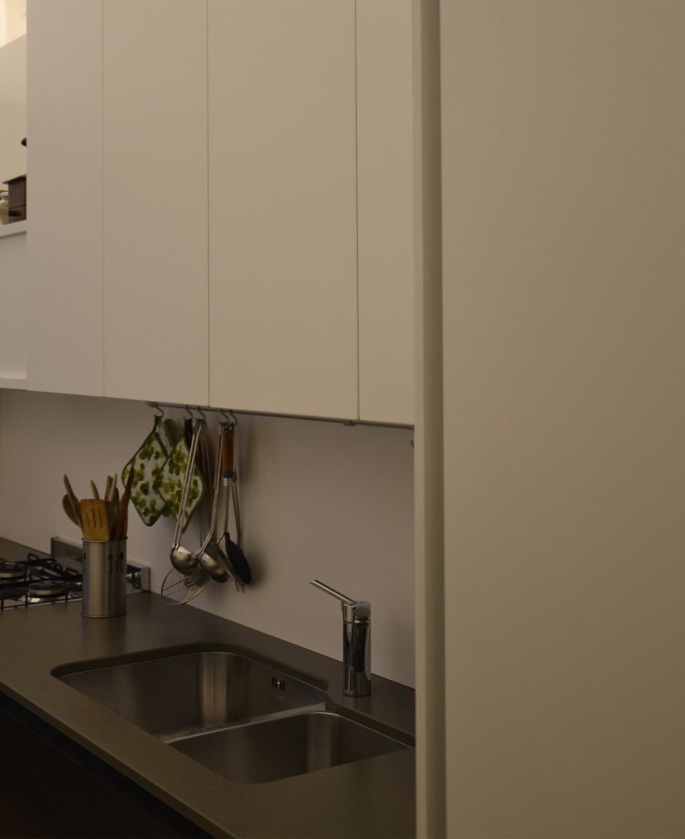 Il progetto di riordino degli spazi residenziali si concentra sulla ridefinizone degli elementi serventi nell'intento di garantire attraverso un linguaggio essenziale - fatto di superfici e volumi neutri - ordine e funzionalità agli ambienti.